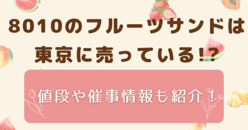 お役立ち情報今回は8010のフルーツサンドは東京に売っているのか、気になる値段や催事情報も紹介します。 甘いものが好きなあなた、8010のフルーツサンドは東京で買えるのか気になりませんか? ・8010のフルーツサンドは東京に売ってい...