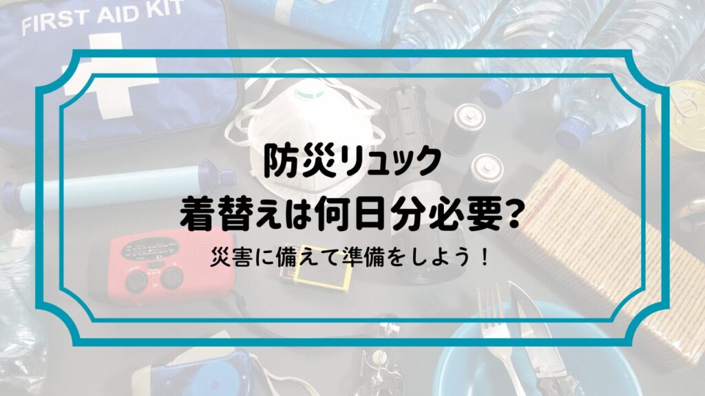 防災リュックに着替えは何日分必要なのか、災害時や避難時に備えて解説していきます。 防災リュックを準備しようとしているあなた、こんなお悩みはありませんか? 災害は突然起こるものなので、もしものために十分な防災グッズを用意し … 続きを読む 防災リュックに着替えは何日分必要?災害時や避難時に備えて解説!